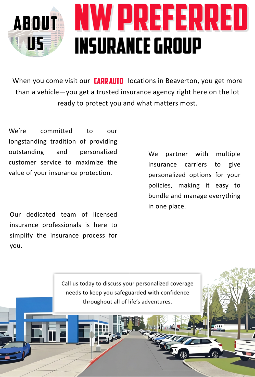 SMS Disclaimer: By providing my phone number to NW Preferred Insurance Group, I agree and acknowledge that NW Preferred Insurance Group may send text messages to my wireless phone number for any purpose. Message and data rates may apply. Message frequency will vary, and you will be able to Opt-out by replying "STOP". For more information on how your data will be handled, please see our privacy policy below: